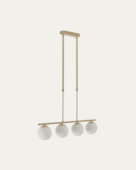 Mahala steel ceiling light with brass finish and four frosted glass spheres