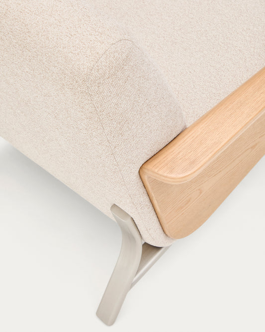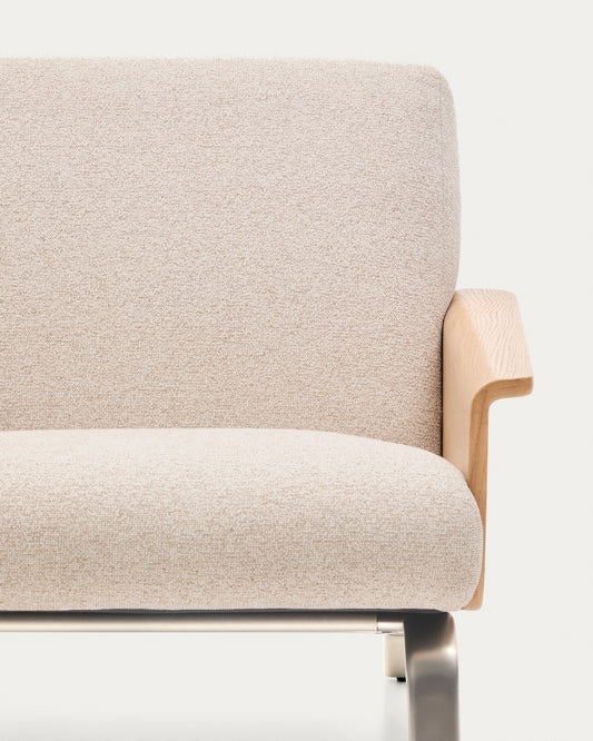 Amsen beige armchair in oak plywood with legs in brushed stainless steel