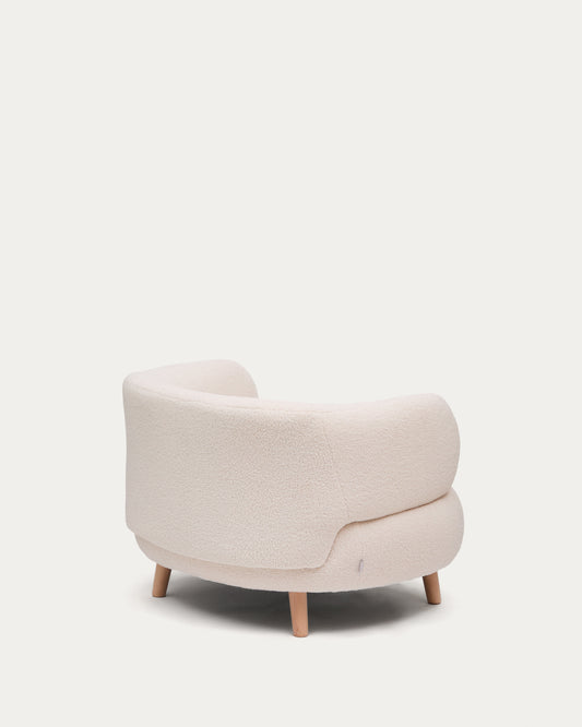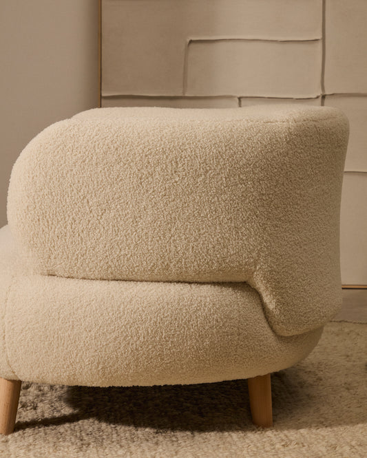 Luisa armchair in ecru boucle with solid beech wood legs 90 cm