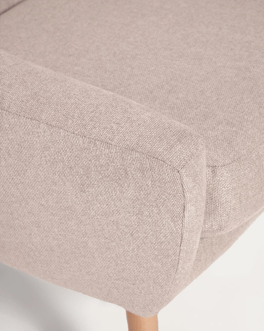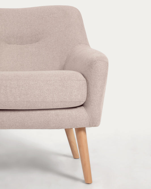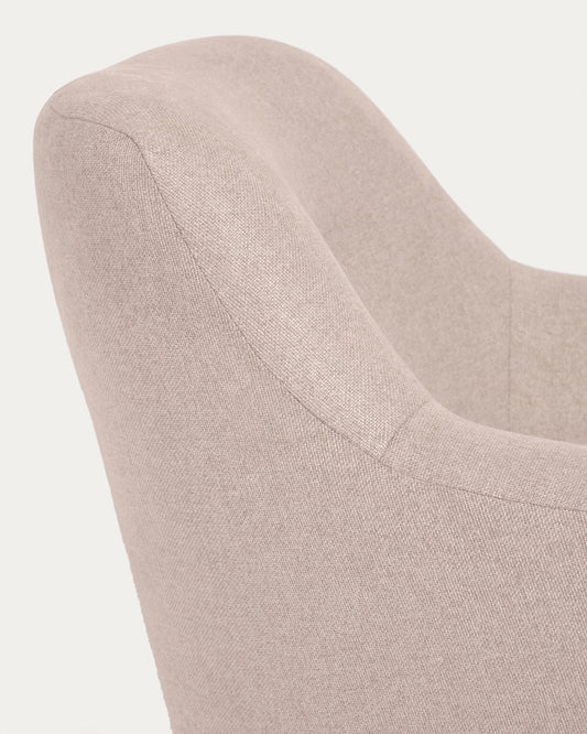 • Armchair with armrests, upholstered in a beige, textured fabric.