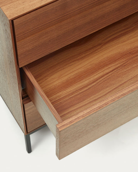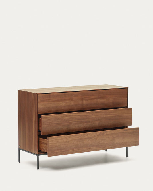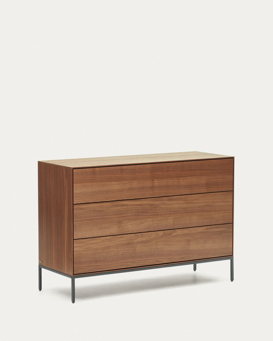 Vedrana 3 drawer chest of drawers in walnut veneer with black steel legs, 110 x 75 cm