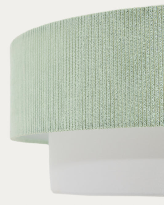 • Ceiling lamp with double shade in white cotton and corduroy.