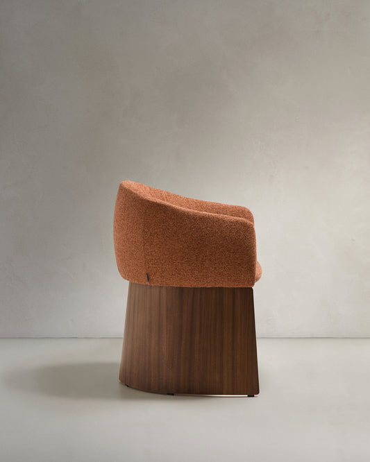 Bosca chair in terracotta chenille and walnut veneer FSC 100%