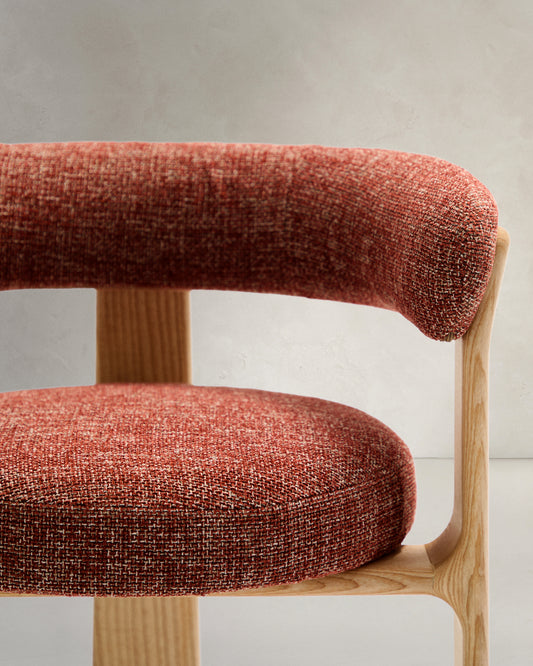 Granite 3-legged chair terracotta chenille and solid ash wood in a natural tone finish FSC 100%