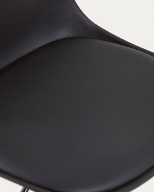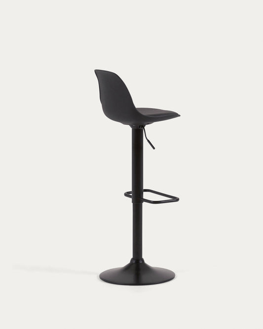 Orlando-T barstool - black synthetic leather and matt black steel 60-82 cm