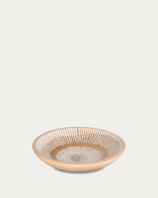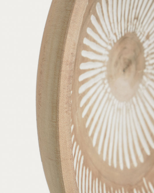 Melisa solid munggur wood wall panel with white striped Ø 30 cm