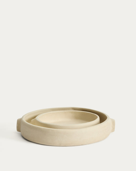 Mireni papier-mâché centrepiece beige Ø 22,5 cm