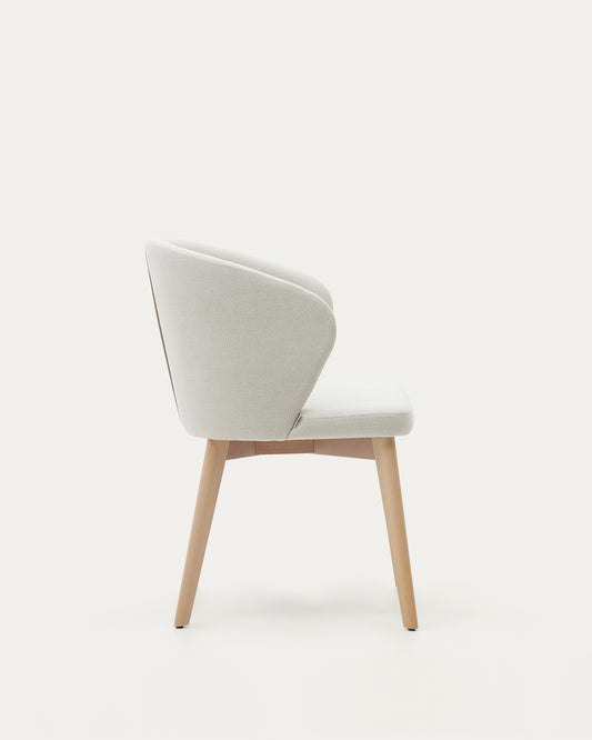 Darice chair in beige chenille and solid beech wood in a natural finish FSC 100%
