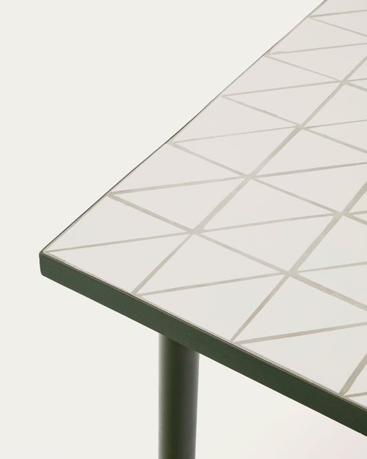 Maurina outdoor table in green galvanised steel with ecru-colored tiles 182 x 91cm