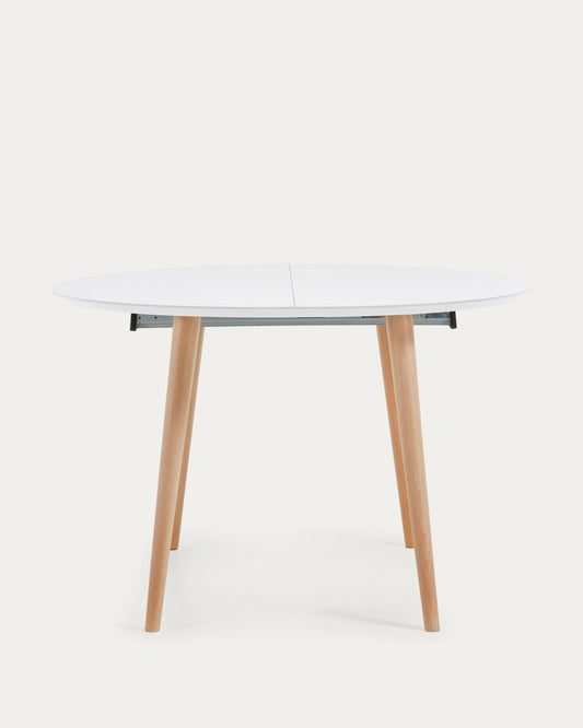 Oqui round extendable MDF table with white lacquer and solid beech legs 120(200)x120 cm