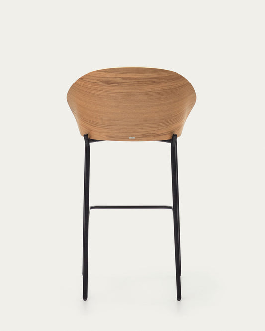 - Stool with backrest in an ash wood veneer with a natural finish.