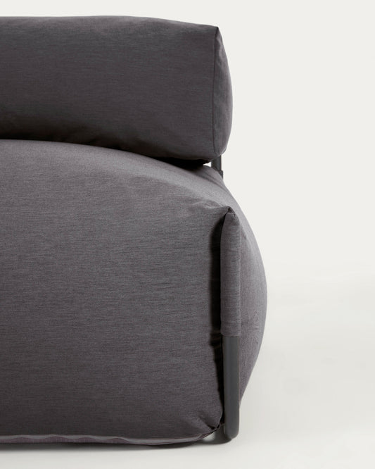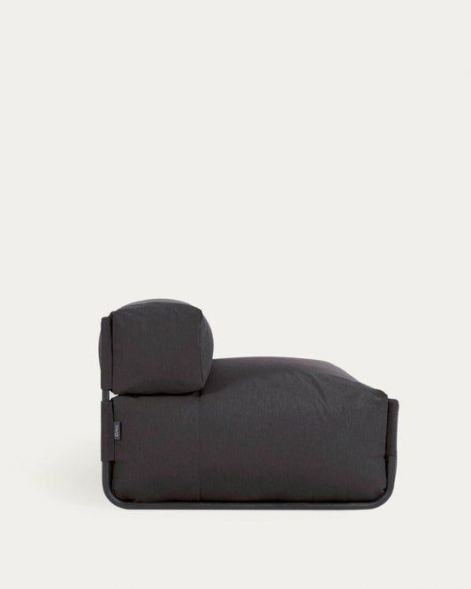 Square modular 100% outdoor sofa pouffe w/ backrest, dark grey, black aluminium, 101x101cm