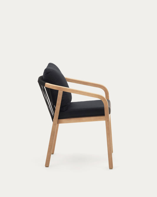 Malaret stackable chair in solid eucalyptus and black cord, FSC