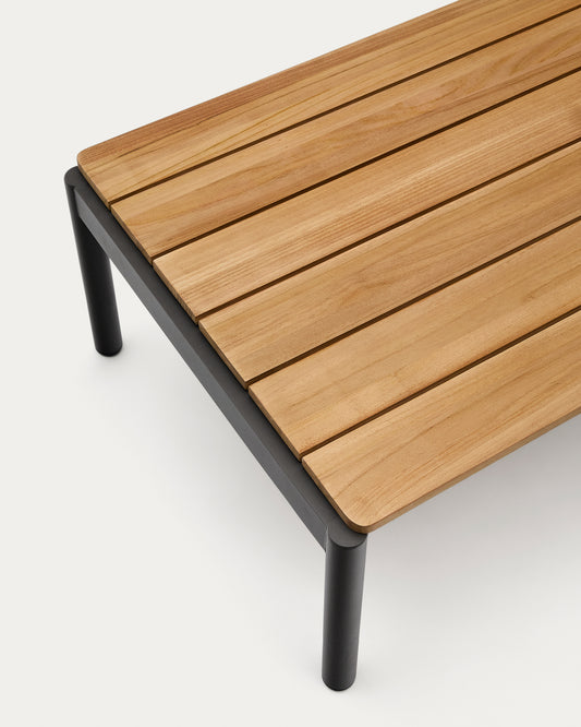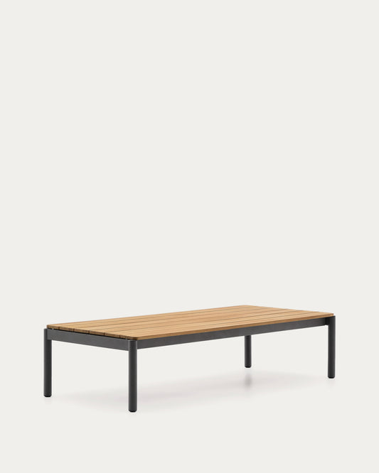 Sorells coffee table in gray aluminum and teak wood 63 x 144,6 cm FSC 100%