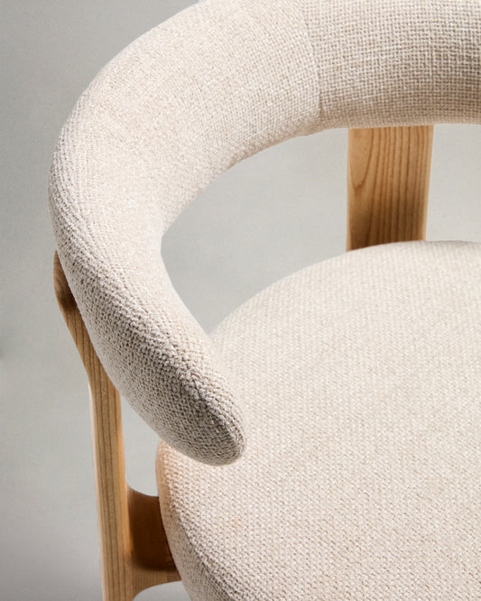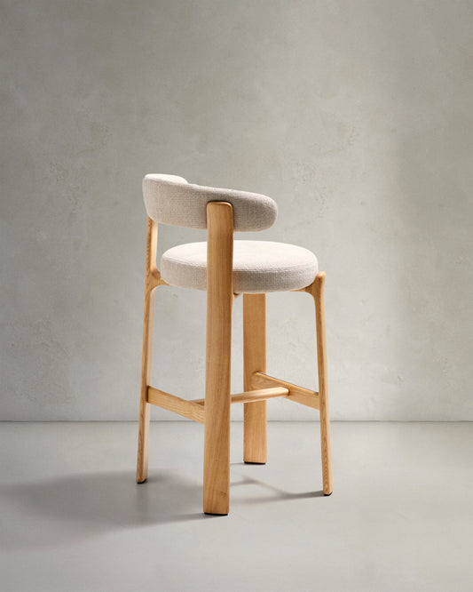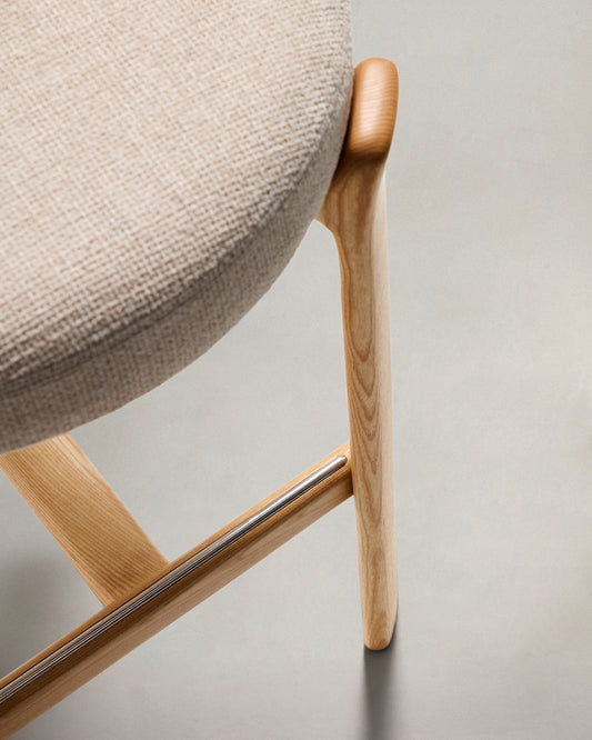Granite stool made of beige chenille and solid ash wood with natural tone finish FSC 100% 75cm