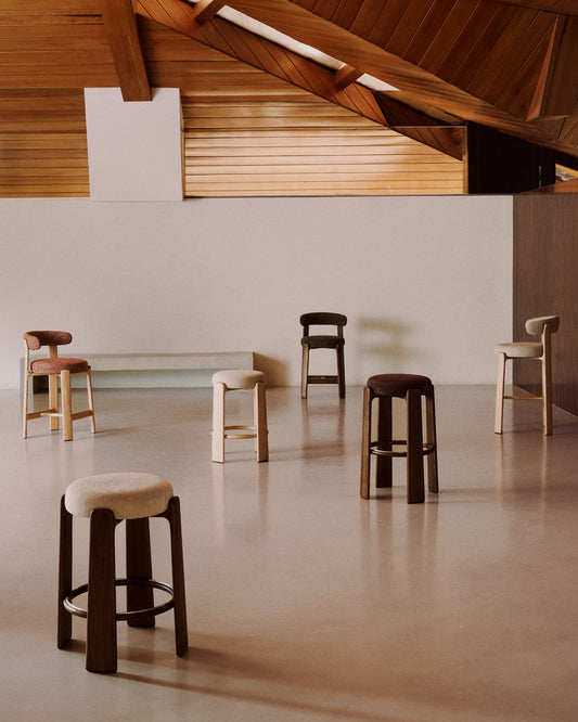 Granite stool in brown chenille and solid ash wood with walnut-coloured finish FSC 100% 65cm