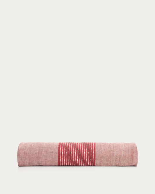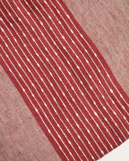 Calena linen jacquard tablecloth with red central stripe 150 x 250 cm