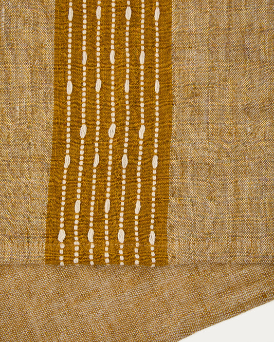 Calena set of 2 placemats linen jacquard with mustard central stripe 35 x 50 cm