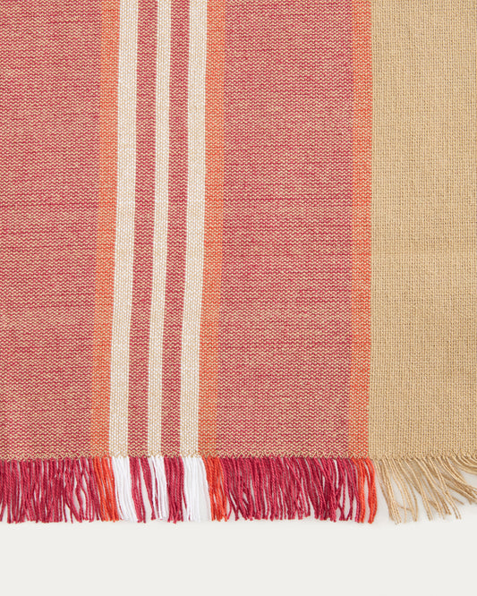 Davia 100% cotton table runner with red stripes and fringed detail 50 x 150cm