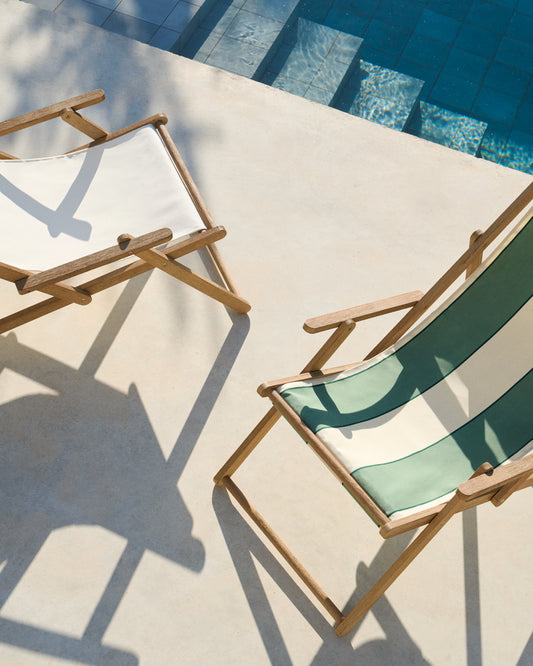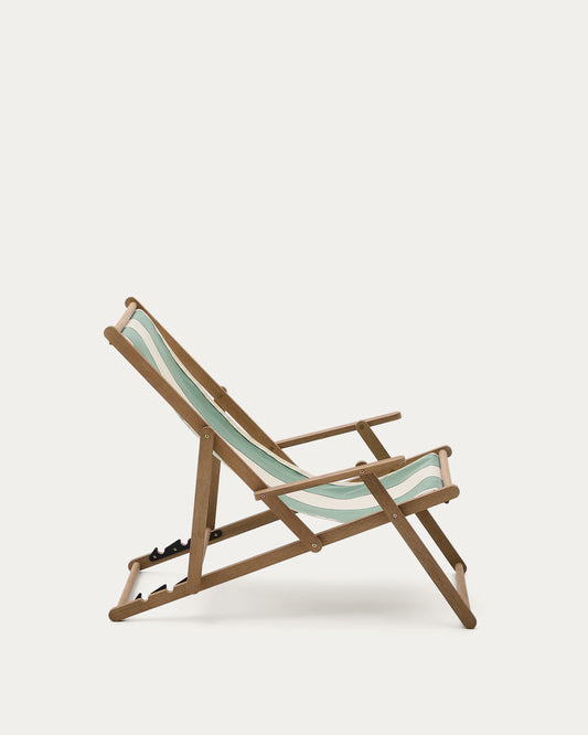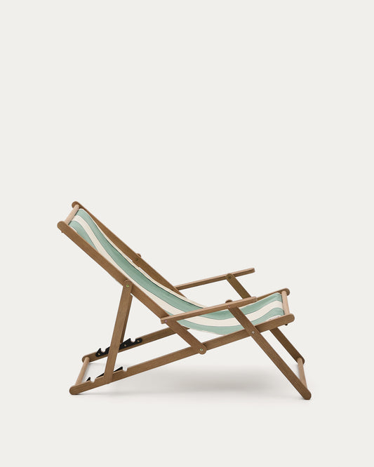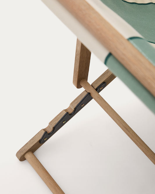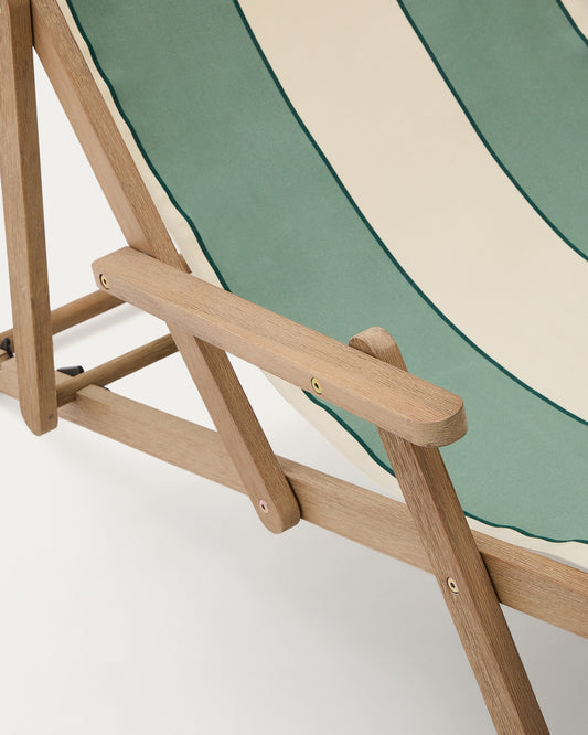 Vilara green and beige striped outdoor folding deck chair made of FSC 100% solid acacia wood
