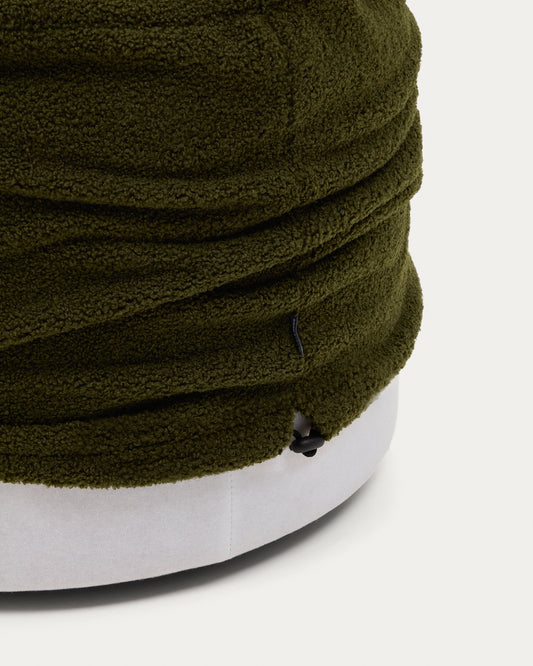 Kaeli footrest with removable cover in green bouclé Ø 60 cm