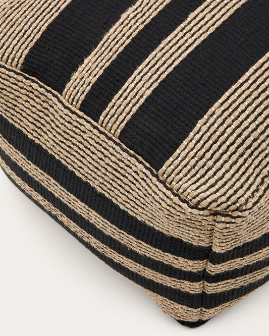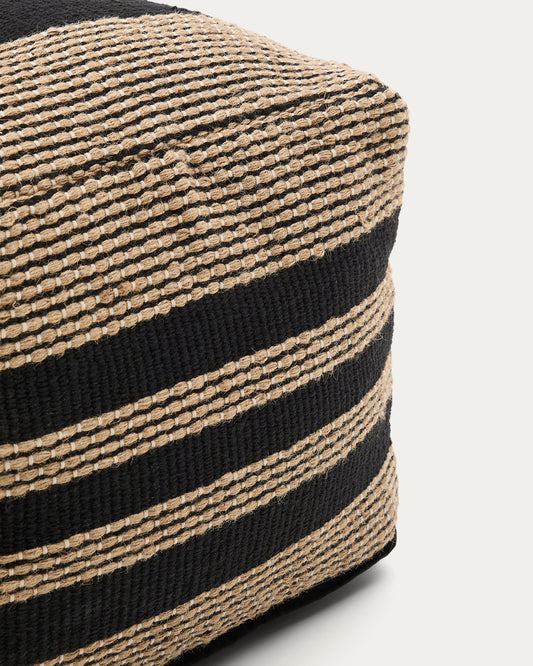 Aylin beige and black jute-embroidered cotton pouf 60 x 60 cm