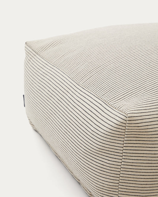 Famara pouffe with removable cover in cotton with ecru stripes 60 x 60 x 40 cm