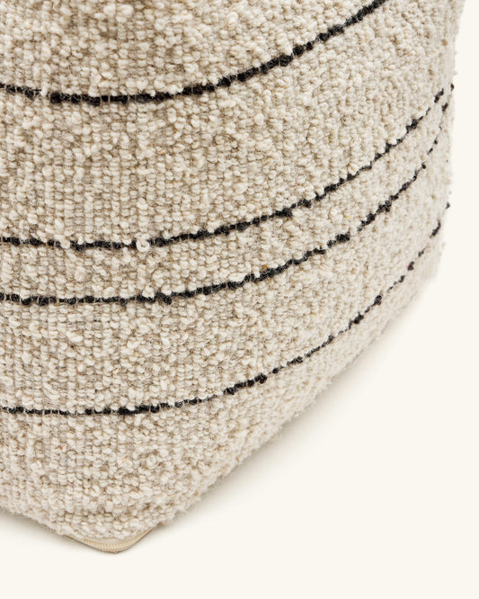 Micol beige wool pouffe with black stripes 40 x 40 cm
