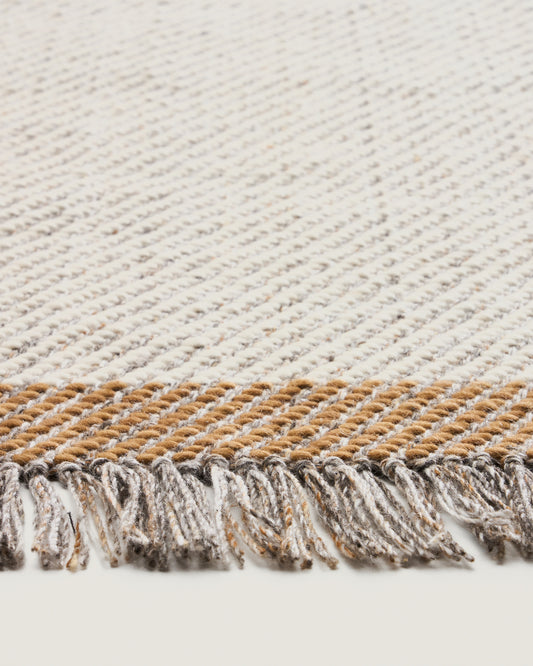 This wool rug stands out for its herringbone jacquard design, which adds dynamism and texture. Made from a carefully selected wool blend, it offers a comfortable underfoot feel and a warm finish that transforms the ambience. Each piece is hand-woven, which makes it an exclusive product with slight variations that enhance its hand-crafted character. The carpet may shed some fibres during the first few months of use, a natural behaviour of wool. In order to keep it looking flawless, we recommend always vacuuming in the direction of the fibre and trimming any loose threads with scissors.