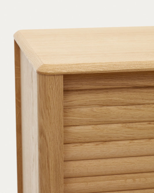 - Sideboard in solid oak and oak wood veneer. Unique design with rounded edges and reliefs on the doors.