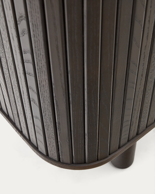 The Kave Home team has created the Mailen collection, with a contemporary design of rounded shapes, made of ash veneer and sliding wooden slatted doors that make it an authentic star.