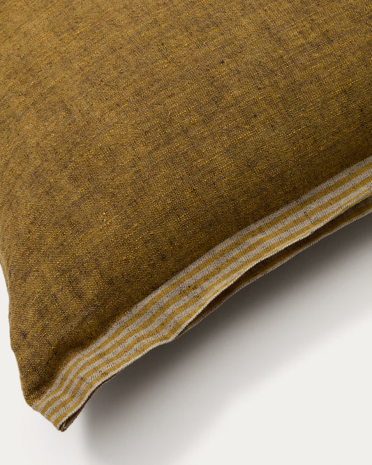 Niven mustard 100% melange linen cushion cover with side stripes 45 x 45cm
