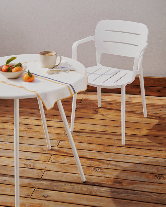 Montjoi round outdoor table in steel with a white finish, Ø 70 cm