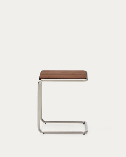 Tarsel side table in walnut veneer with brushed stainless steel structure 42 x 47cm