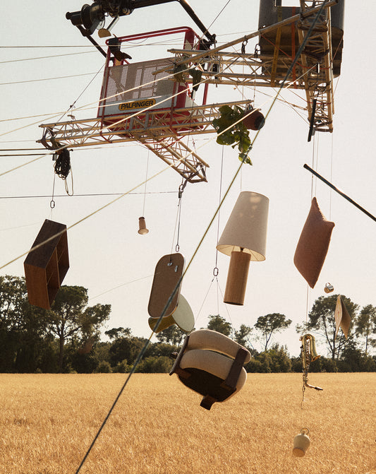 To bring the metaphor to life, the objects were suspended in the air using various truss structures hanging from three cranes that would later disappear in post-production. The scenes were filmed with a camera moving over platforms, travelling shots and aerial shots taken by a drone. El Ranchito handled the post-production and visual effects, removing all the technical elements and finally building that elegant, suspended visual atmosphere. The little white house that appears in the last shot was fully 3D generated.
