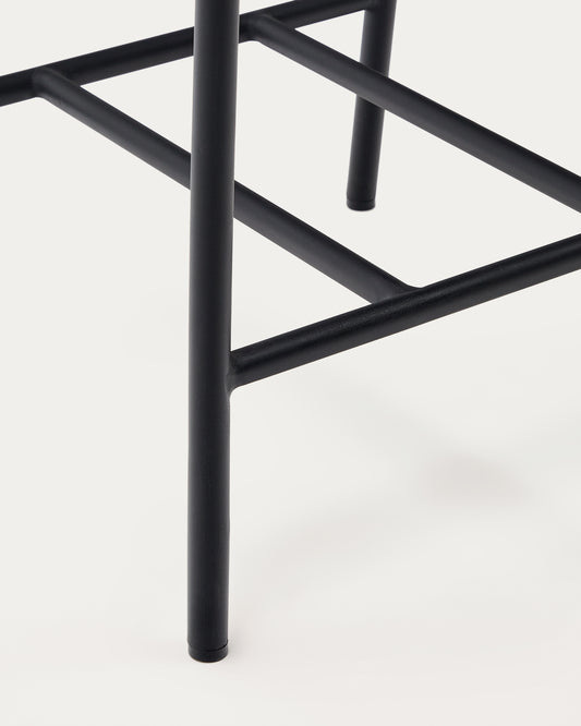 Algueret Stool Solid Eucalyptus Wood Natural Finish and Black Aluminum 65 cm FSC 100%