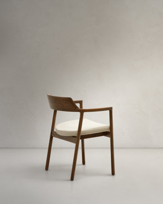 Alocs chair removable cover in beige chenille solid oak wood walnut finish FSC Mix Credit