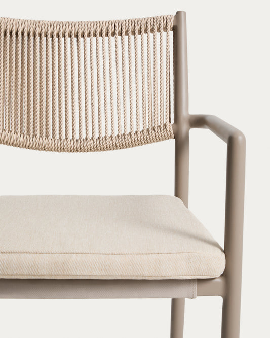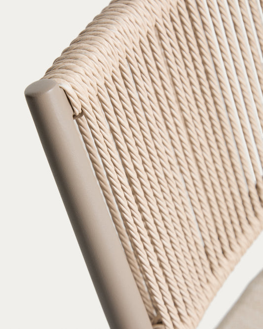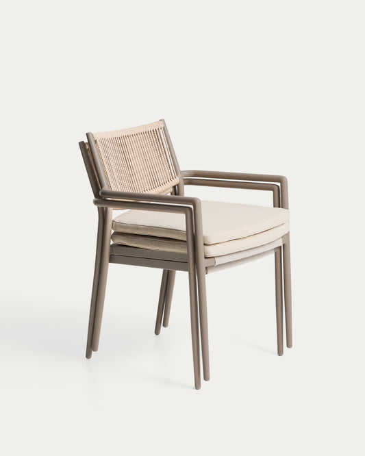 Argasi stackable outdoor chair in taupe aluminium and beige synthetic rope cord