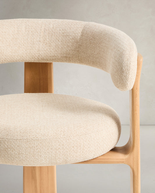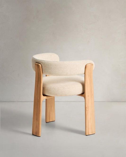 Granite 3-leg beige outdoor chair with FSC 100% solid teak wood legs in a natural finish