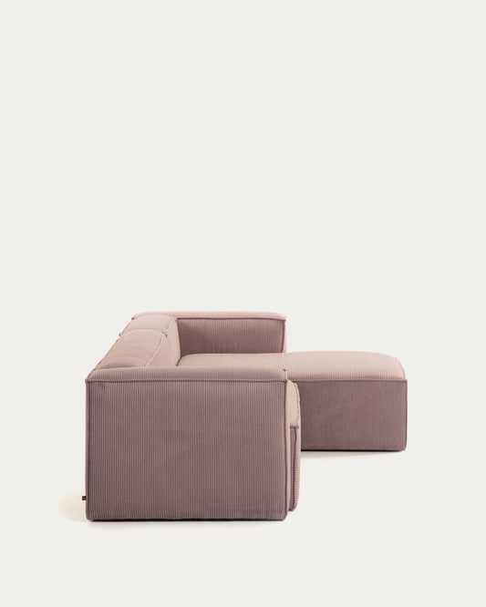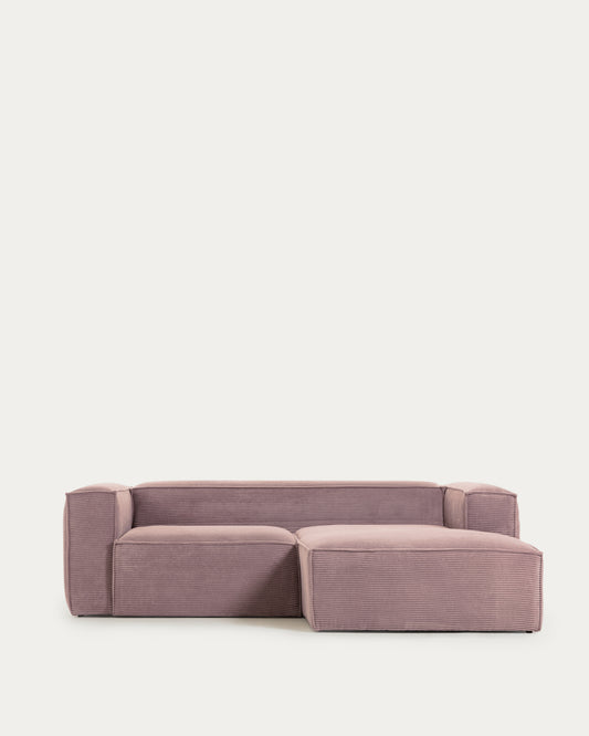 Blok 2 seater sofa with right side chaise longue in pink wide seam corduroy, 240 cm