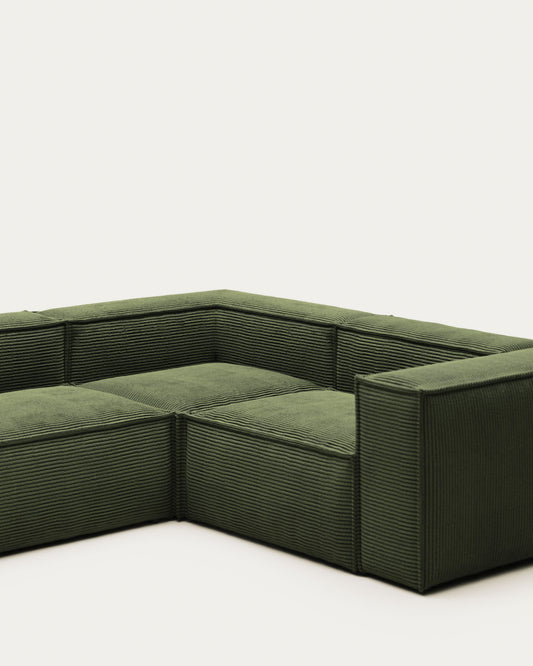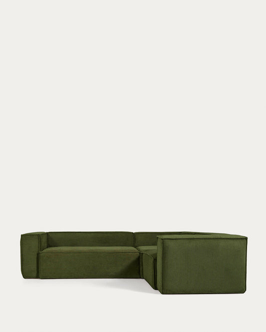 Blok green thick corduroy 3-seater corner sofa 290 x 230cm/230 x 290cm FSC Mix Credit
