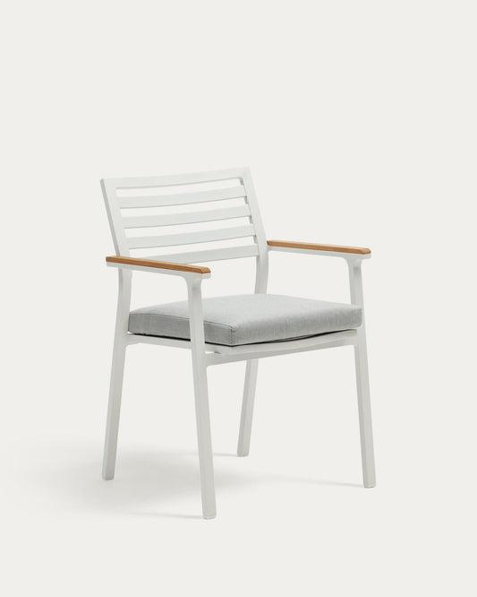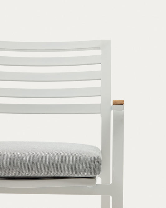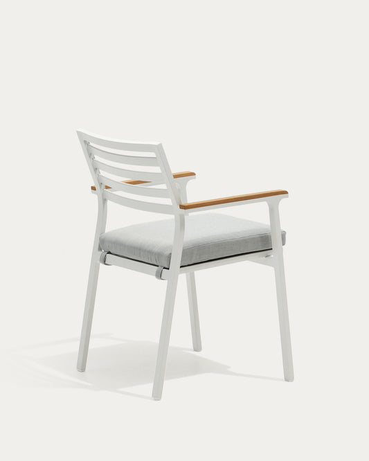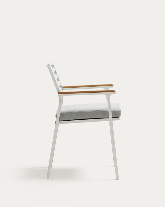 Bona stackable outdoor chair in aluminium with white finish and solid teak wood armrests