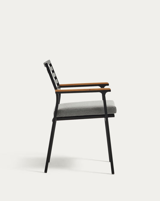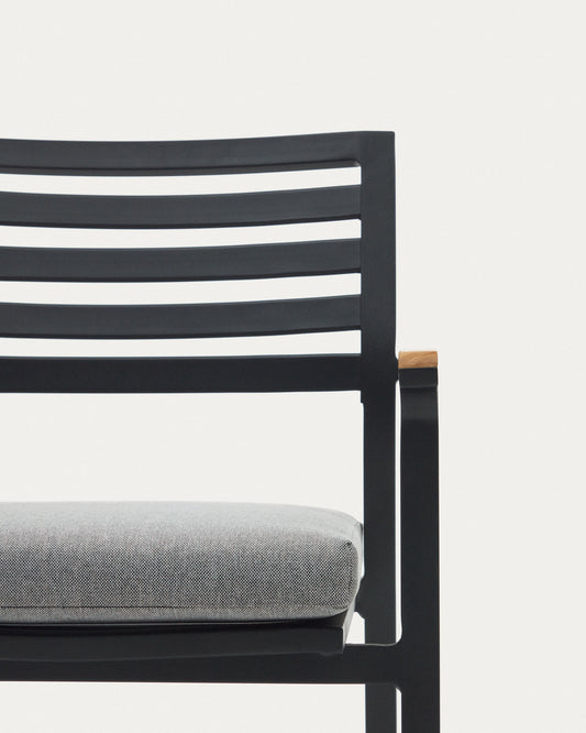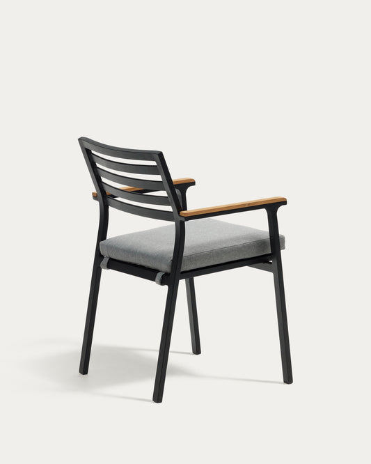 Bona stackable outdoor chair in aluminium with black finish and solid teak wood armrests