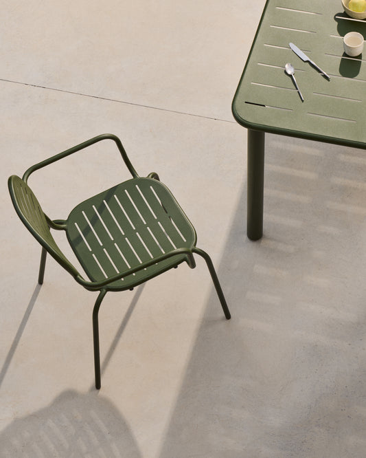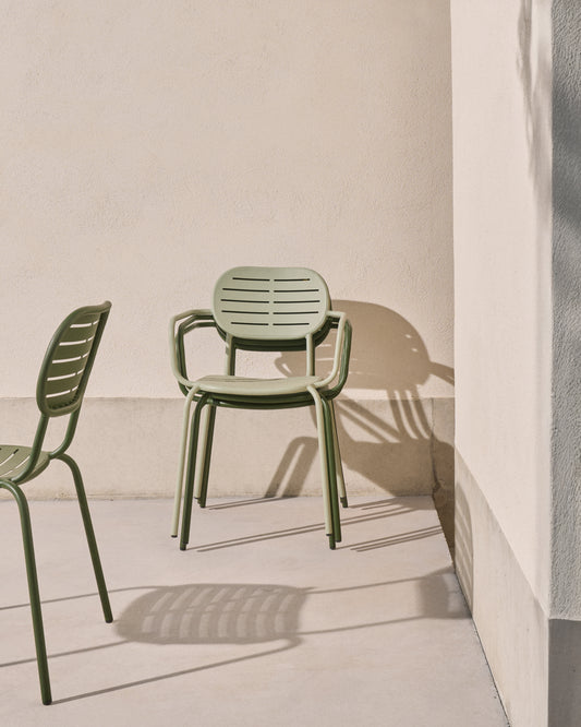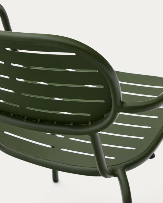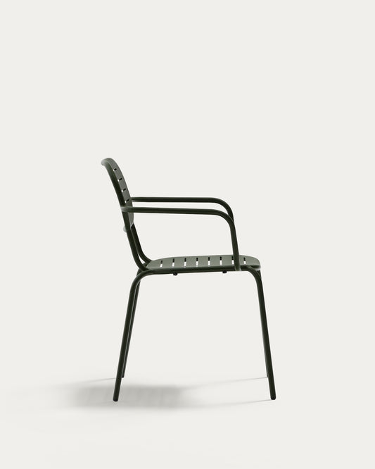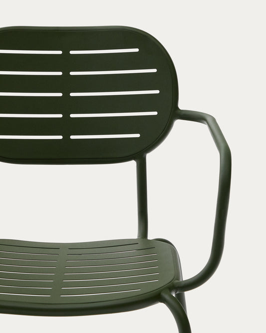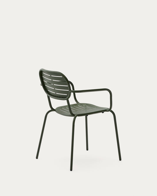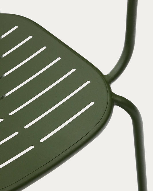 Brai stackable outdoor chair with armrests in green galvanised steel