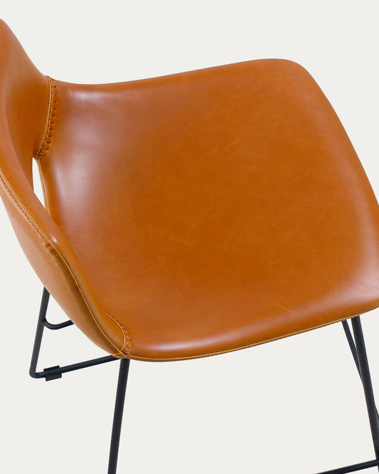 - High stool, 65 cm, with upholstered seat and backrest in light brown synthetic leather.