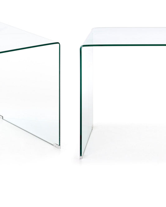 - Minimalist glass design with clean lines and rounded edges. Ideal for making small room feel brighter and more spacious.