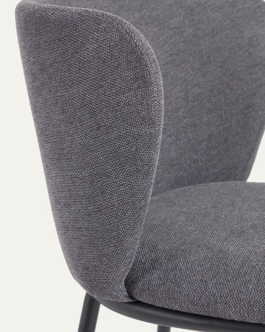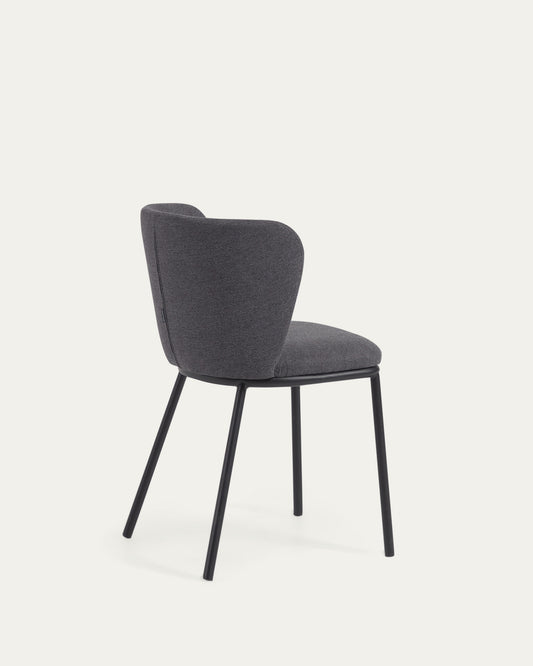 Ciselia chair in dark grey chenille and steel legs with black finish FSC Mix Credit