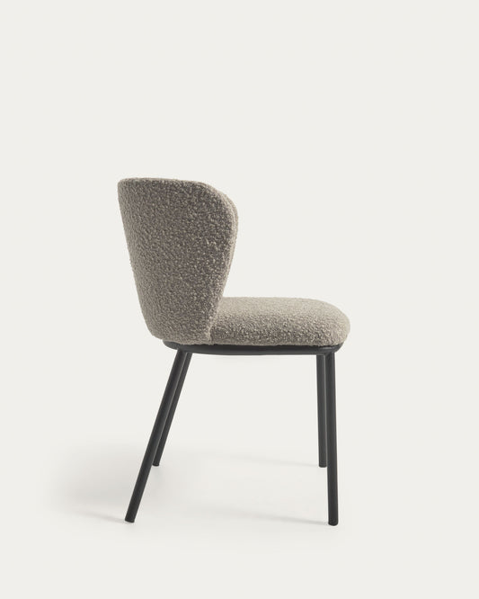 Ciselia chair with light grey bouclé and steel legs with black finish FSC Mix Credit