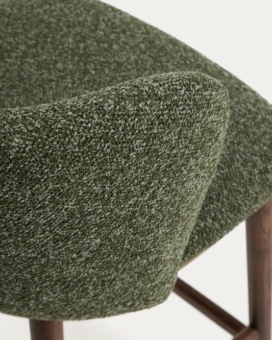 Ciselia dark green thick chenille stool with solid ash wood legs with walnut-coloured finish FSC Mix Credit 75cm