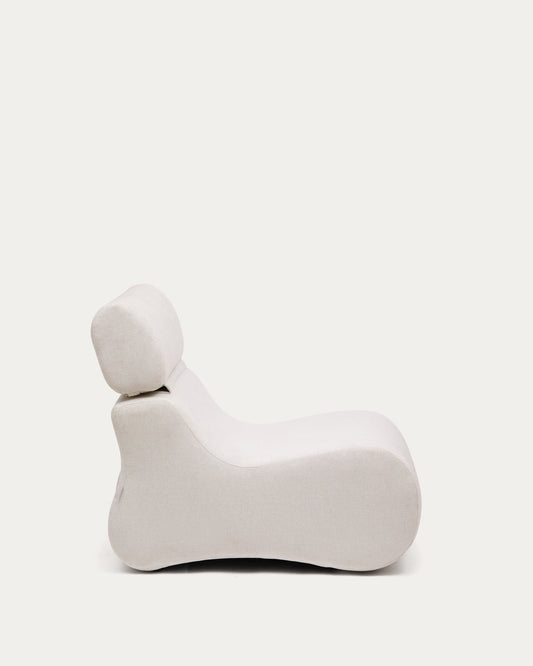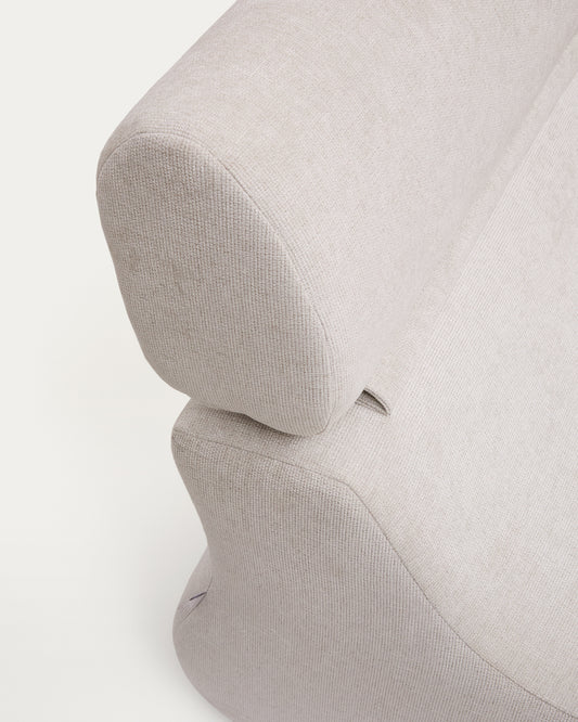 - Upholstered armchair with a pearl-coloured, tight-knit chenille fabric.